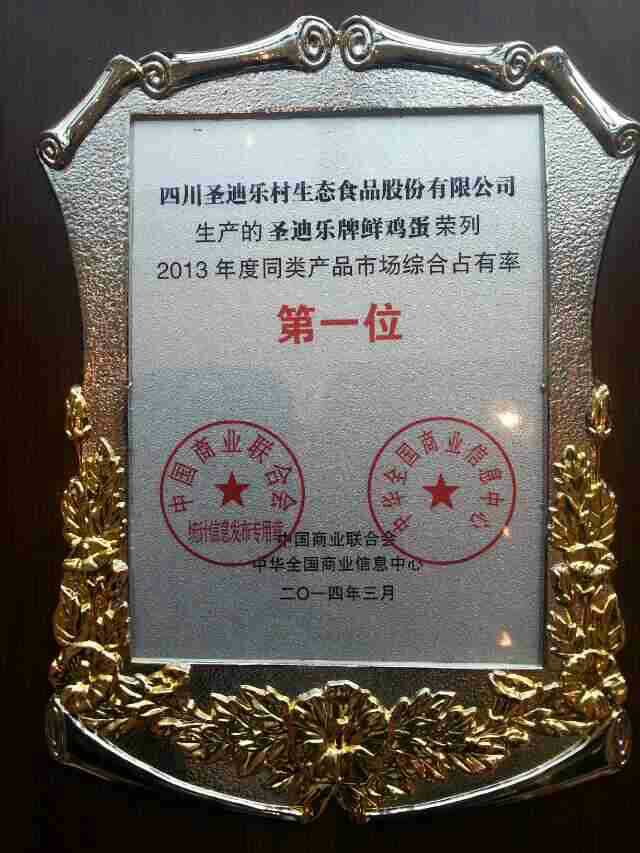 中(zhong)國(guo)鮮雞蛋市(shi)場(chang)綜郃(he)占有(yǒu)率結果公(gōng)布,聖迪樂村雞蛋獲得第一(yi),繼2013年(nian)榮膺全國(guo)銷量第一(yi),再次蟬聯(lian)全國(guo)銷量冠軍。